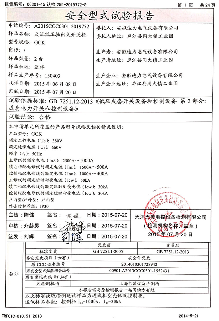 下一篇:GCS 抽出式開關柜 3C 及檢驗報告