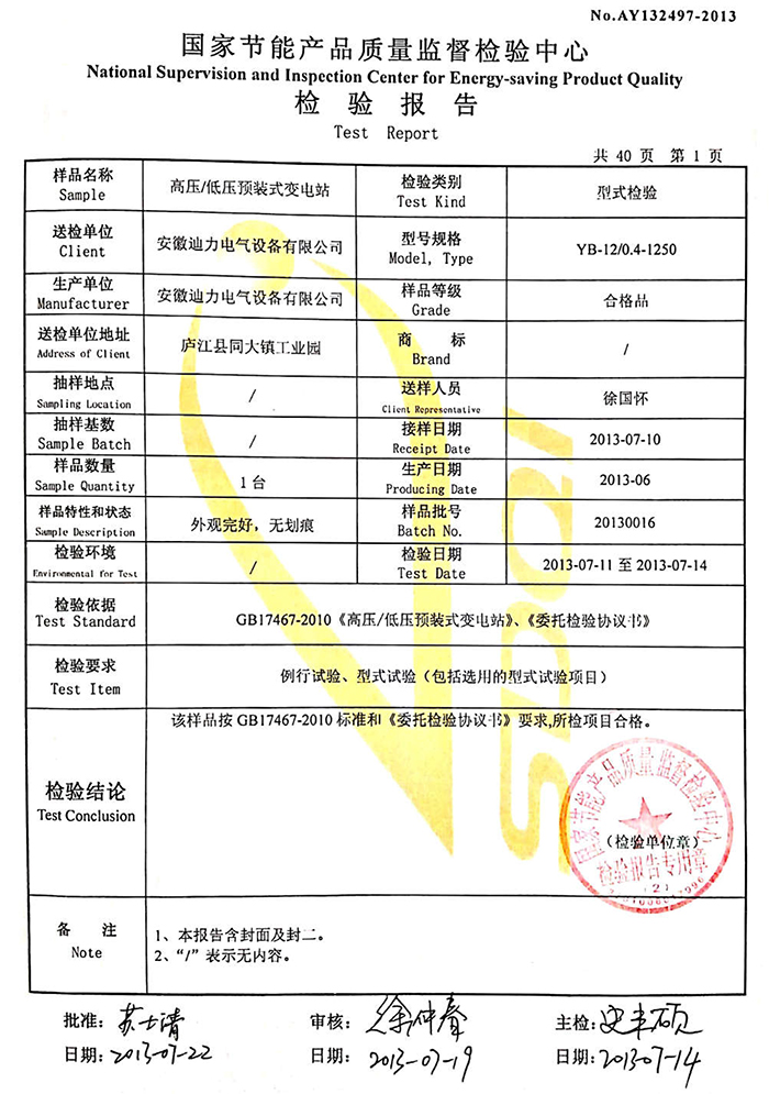 箱式變電站檢驗報告